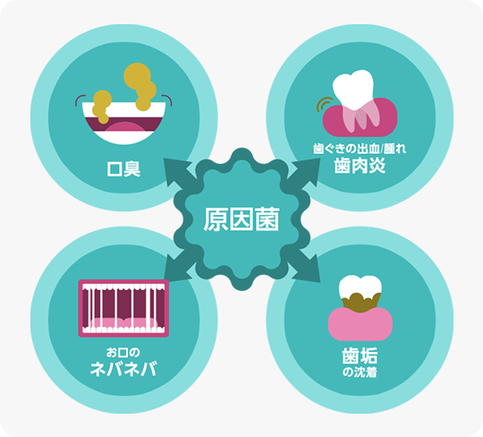 お口トラブルの原因菌の殺菌
